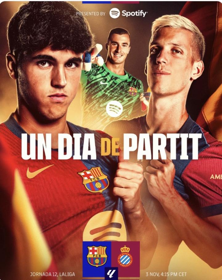 北京时间11月3日23:15分,西甲第12轮,巴塞罗那将在主场迎战西班牙人,加泰罗尼亚德比即将打响。赛前,巴萨官方发布了本场比赛的预热海报。
