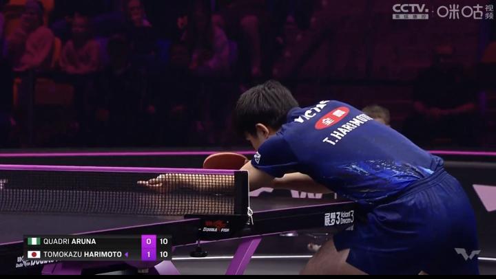 决胜局,开局阿鲁纳在长回合中依旧能够把握住机会,6-1领先张本智和,最终阿鲁纳抓住关键机会,以11-3取胜,大比分3-2战胜张本智和,晋级男单16强。