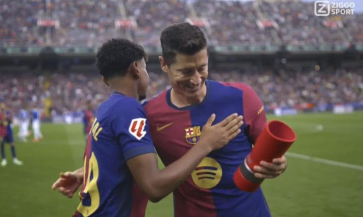 加泰德比赛前,邦马蒂、亚马尔和莱万先后展示奖杯LaPulga @懂球帝2024-11-03 23:21在巴塞罗那对阵西班牙人的加泰罗尼亚德比之前,三名球员展示了他们在近期获得的荣誉。巴塞罗那女足球员邦马蒂在巴萨男足本轮比赛中展示了金球奖,她在2023年和2024年连续赢得了女足金球奖。随后,巴塞罗那小将亚马尔展示了科帕奖,这是代表最出色年轻球员的奖项。此外,莱万多夫斯基还展示了西甲十月最佳球员奖杯,他在上个月的3场西甲比赛中打入了7粒进球。展开更多