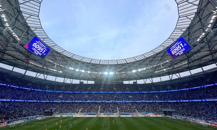 在破中甲纪录的60,951名观众的见证下,大连足球又一次浴火重生,回到了顶级联赛序列。如今扛起大连足球旗帜的大连英博足球俱乐部成立于2021年底,仅用三年时间便完成了从中冠到中超的三连跳,延续了大连实德和大连人俱乐部的火种。
