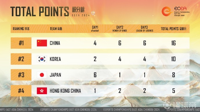 第四届东亚电竞赛:中国队获两金一银,以总分16分夺冠