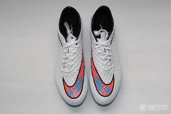在搭配蜂窝状的热熔模固定效果,其整个鞋面总体并不会塌陷。可以说,毒锋1代在触感上的霸道不仅是让人流连忘返,而且表面蜂窝状的热熔膜设计使得鞋面极具涩感,总体定型也相当完美,毫无疑问是NikeSkin材料的巅峰之作。最重要的是,这款顶级NikeSkin搭配Nike独到的全天候掌控技术,其在下雨天和潮湿环境当中也可以保证出色的实战性能,水分子只得透过NikeSkin的热熔模而蒸发到外侧,使用者双脚在实战过程中可以时刻保证清爽干燥。