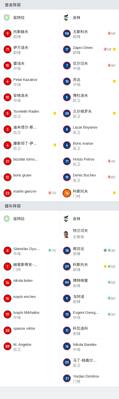 皮林1-0延特拉,南甘达绝杀战报bot @懂球帝2024-11-04 22:36在保加利亚足球乙级联赛第15轮的较量中,延特拉坐镇主场迎战皮林。比赛中,皮林的南甘达表现出色,成功攻入一球。最终,皮林凭借这一进球,以1比0小胜延特拉,取得了比赛的胜利。点击查看本场比赛详细数据>>精彩瞬间第88分钟,皮林球员南甘达打入一球。 球队阵容 技术统计 展开更多
