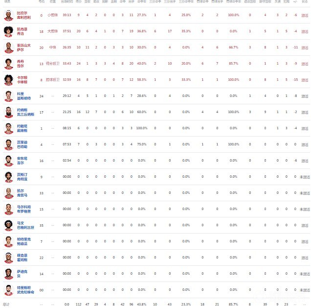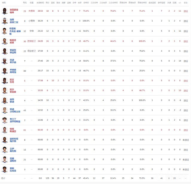 金州勇士斯蒂芬-库里24分3板6助,希尔德20分5板2助2断1帽,德雷蒙德-格林18分8板5助1帽。
