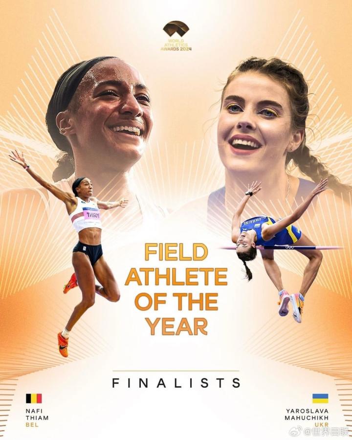 北京时间11月5日,国际田联公布年度最佳运动员最终入围名单,经过第一阶段投票,各奖项角逐出最终的两名候选者,第二阶段投票将于北京时间11月11日凌晨6点截止,最终获奖者将于12月1日公布。