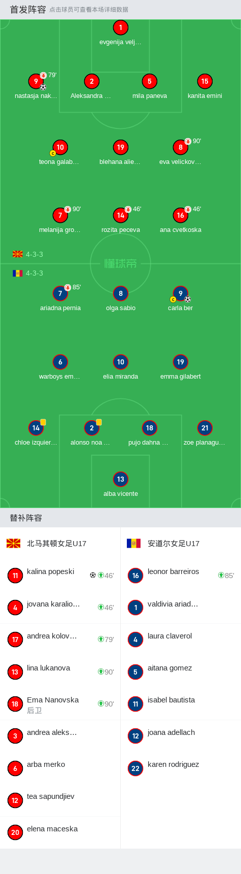北马其顿女足U17 2-1逆转安道尔女足U17,kalina popeski替补传射,nastasja nakova破门