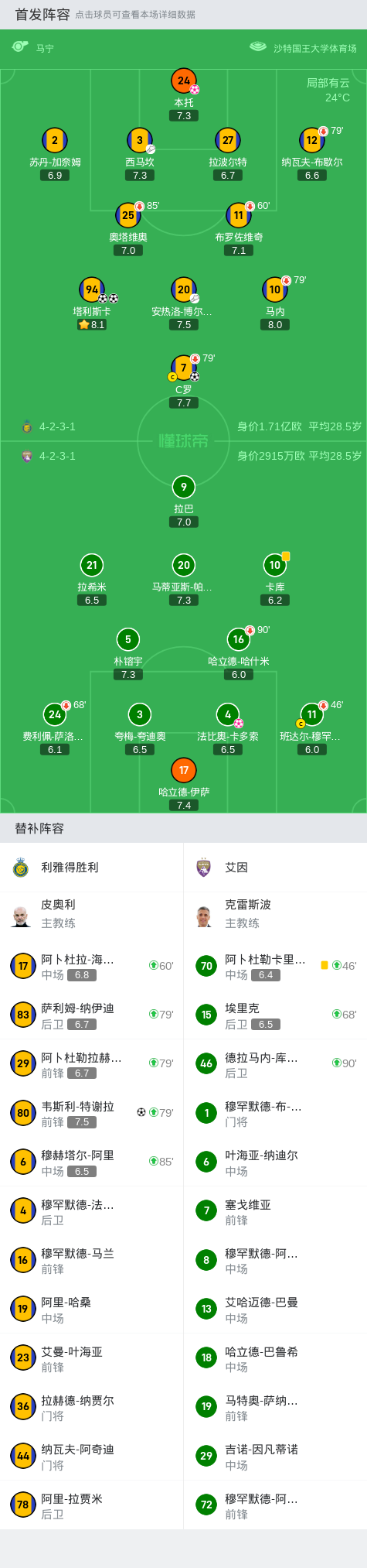 第31分钟,马内远射被扑,C罗门前机敏补射入网!利雅得胜利2-0艾因