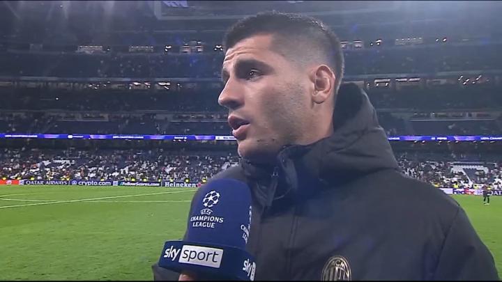 米兰在欧冠联赛阶段第4轮客场3-1击败皇家马德里,打进一球的莫拉塔在赛后接受了意大利天空体育的采访。