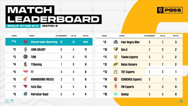 MATCH2,Daytrade Gaming吃鸡得到24分。