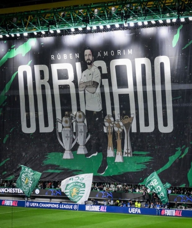 欧冠联赛阶段第4轮角逐,葡萄牙体育主场4-1击败曼城。大战开始前,葡萄牙体育球迷展示巨幅Tifo向即将离任的主教练阿莫里姆致敬。