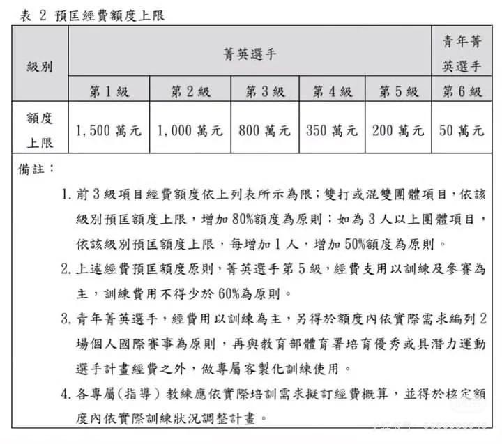 根据台湾体育署此前经费划分标准,高承睿属于精英选手中的第四等级,每年可获得350万元台币的经费额度。由于近年来,高承睿逐渐在国际舞台崭露头角,因此所需专业经费和参赛旅费也是水涨船高。