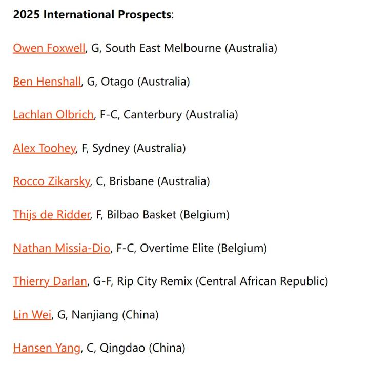 北京时间11月6日,美国知名选秀网站NBA Scouting Live更新了2025届NBA选秀的候选名单。
