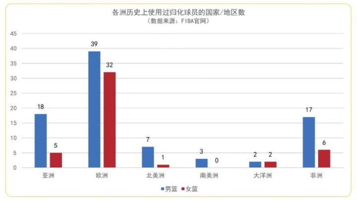 据统计,迄今为止,历史上已有86个国家和地区的男篮有过归化球员的出场记录,女篮相对较少,但也达到了46个。