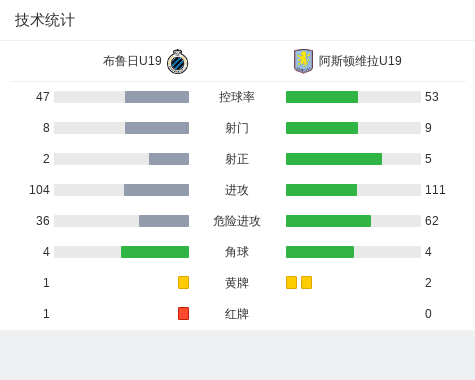 第38分钟,布鲁日U19 球队Axl Wins吃到红牌。