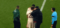 第22分钟,特鲁宾脚有些受伤坐在地上,经过队医治疗继续比赛