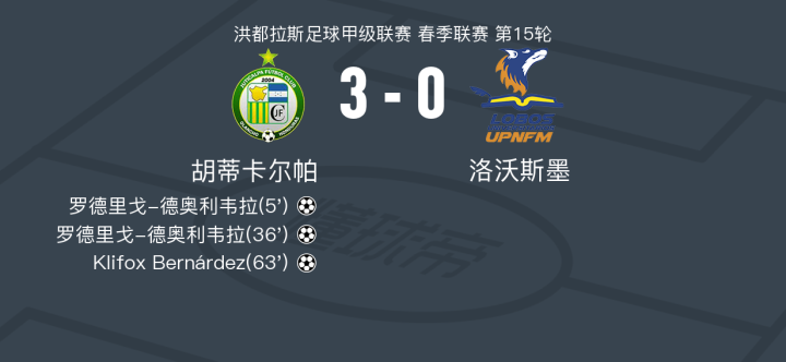 胡蒂卡尔帕3-0大胜洛沃斯墨,罗德里戈-德奥利韦拉双响,Klifox Bernárdez破门