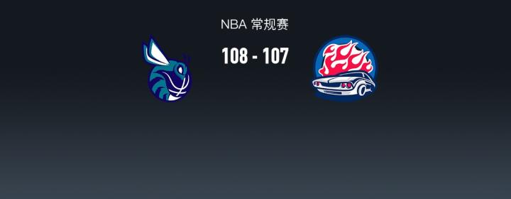 第四节黄蜂鲍尔拿下15分,活塞保罗-里德拿下8分,最终黄蜂108-107战胜活塞
