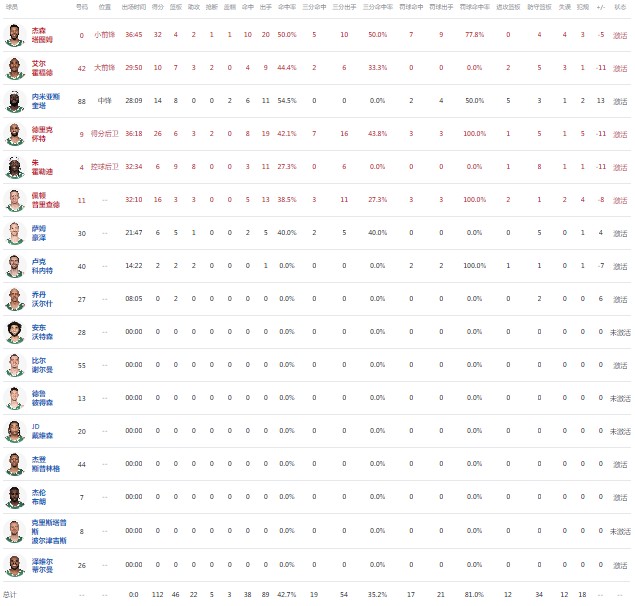 球员全场数据