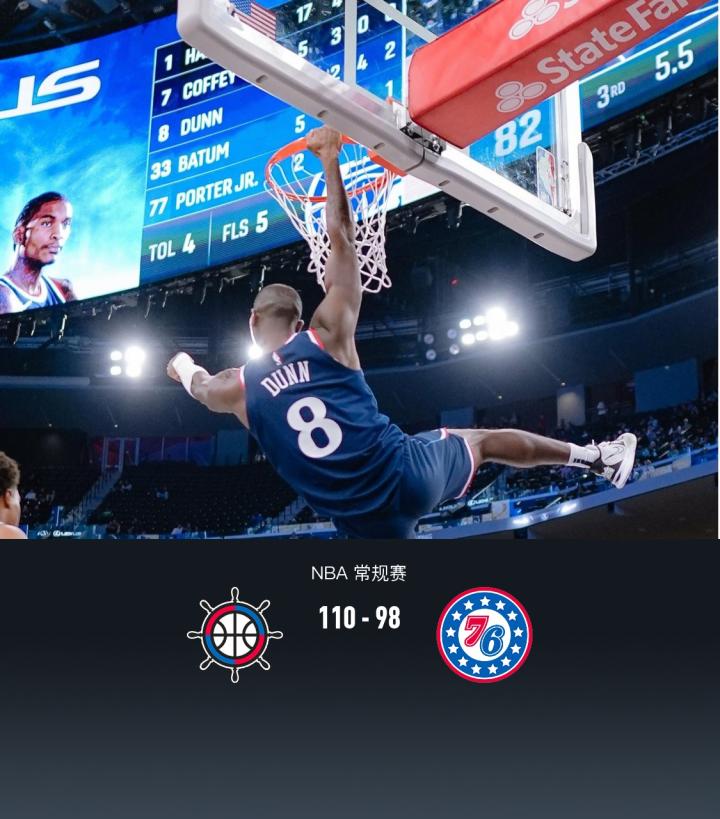 第四节快船诺曼-鲍威尔拿下8分,76人乌布雷拿下8分,最终快船110-98战胜76人