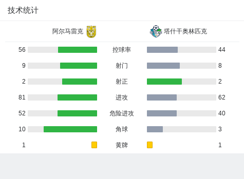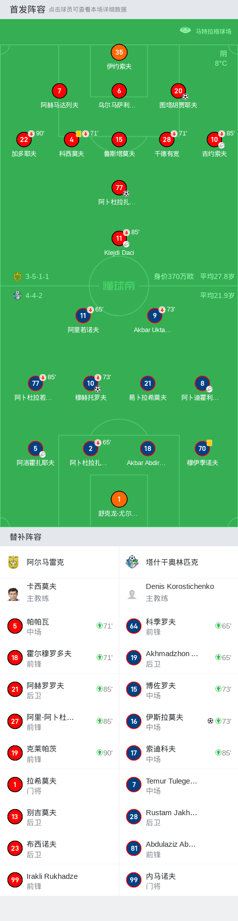 第28分钟,阿尔马雷克球员Klejdi Daci助攻阿卜杜拉扎科夫打入一球。
