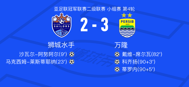 万隆3-2逆转狮城水手,蒂罗内破门,科齐扬建功
