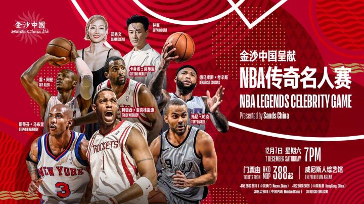 11月7日,金沙中国宣布,“金沙中国呈献——NBA传奇名人赛”将会于12月7日在澳门举行。届时,包括麦迪、雷-阿伦、托尼-帕克、马布里、考辛斯以及莫布利等在内的多名NBA传奇球星会参与到这场集体育与娱乐于一身的明星赛。