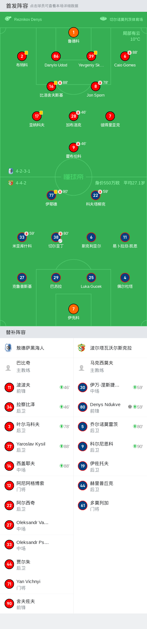 第79分钟,波尔塔瓦沃尔斯克拉球员切尔亚丁助攻Denys Ndukve打入一球。