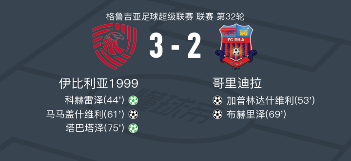在格鲁吉亚足球超级联赛第32轮的较量中,伊比利亚1999坐镇主场迎战哥里迪拉。比赛中,伊比利亚1999的科赫雷泽率先通过点球为球队取得领先。随后,哥里迪拉的加普林达什维利在洛米纳泽的助攻下扳平比分。伊比利亚1999的马马盖什维利再次为主队取得领先,但哥里迪拉的布赫里泽迅速将比分追平。最终,塔巴塔泽通过点球为伊比利亚1999锁定胜局。比赛结束,伊比利亚1999以3-2战胜哥里迪拉。