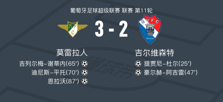 莫雷拉人3-2逆转吉尔维森特,恩拉沃建功,迪尼斯-平托破门