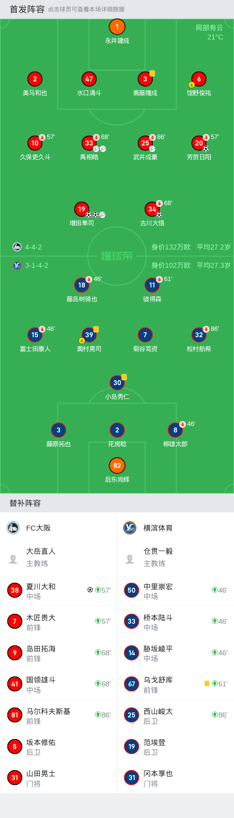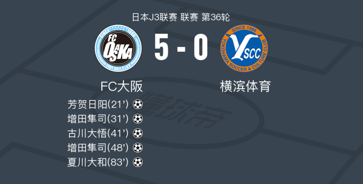 FC大阪5-0狂胜横滨体育,增田隼司双响,夏川大和破门
