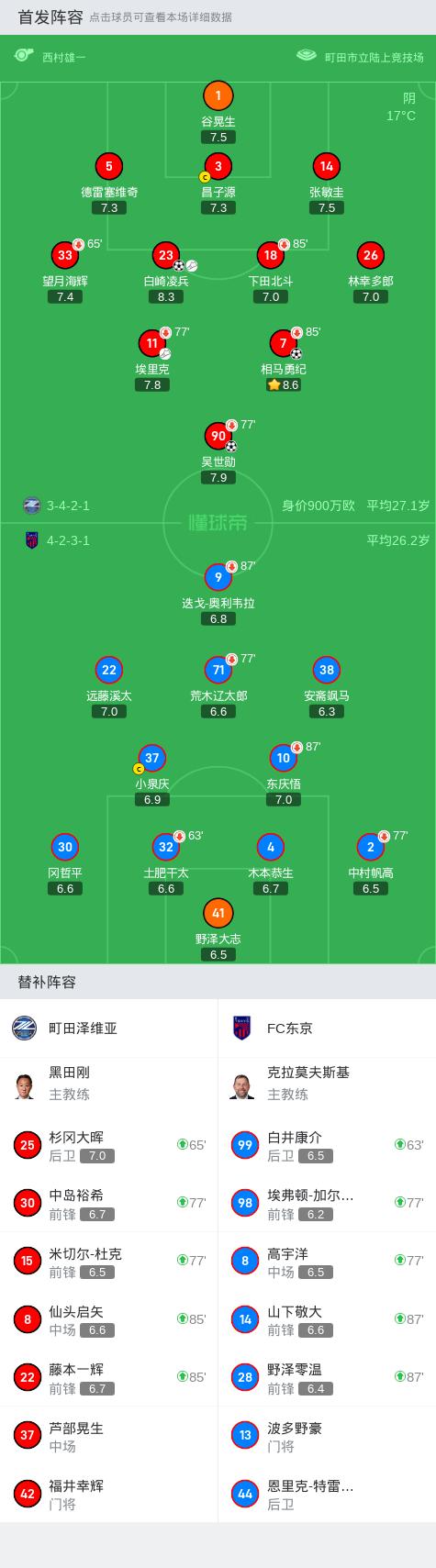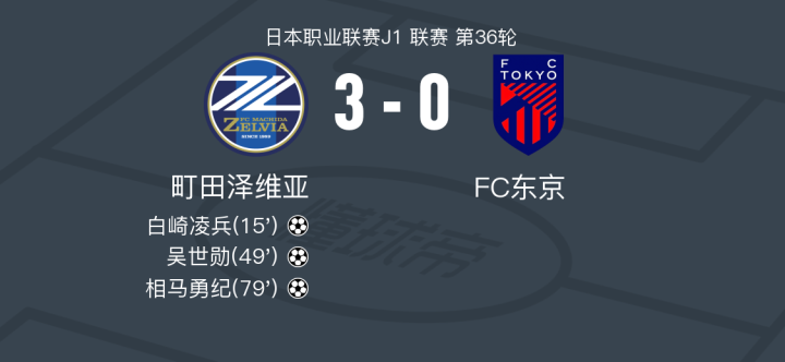 町田泽维亚3-0大胜FC东京,相马勇纪、吴世勋破门