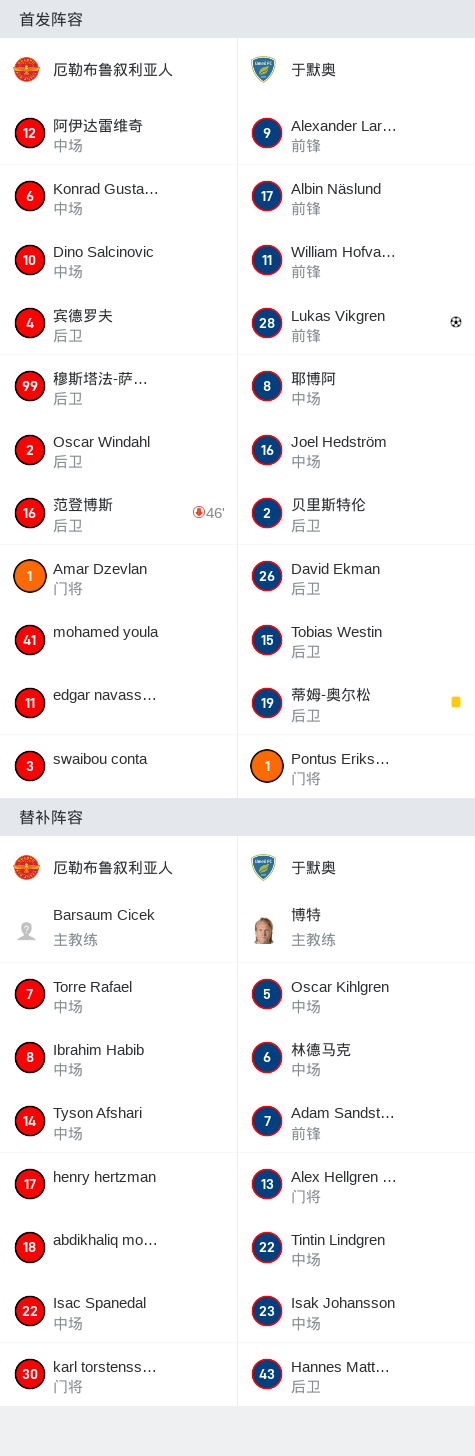 第63分钟,于默奥球员Lukas Vikgren打入一球。