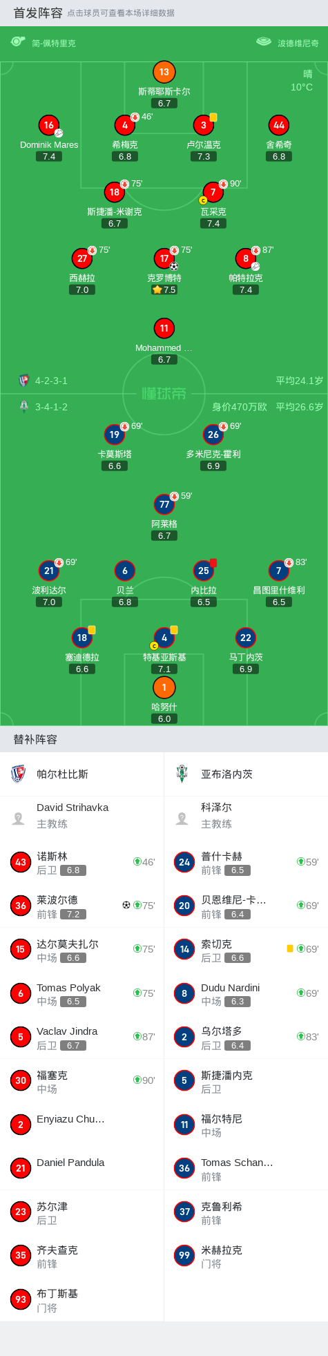 第78分钟,帕尔杜比斯球员Dominik Mares助攻莱波尔德打入一球。