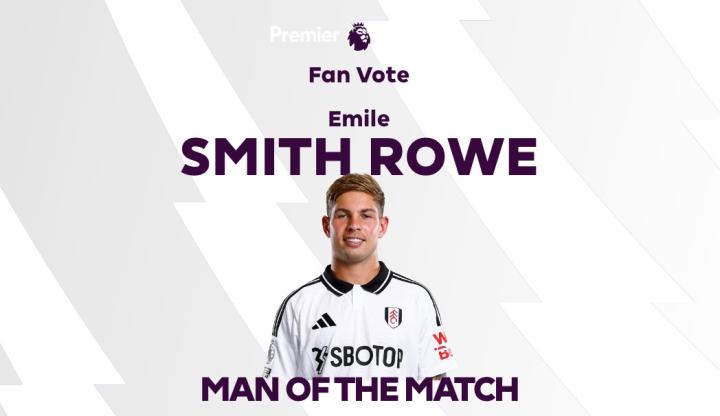 在英超第11轮的比赛中,史密斯-罗的进球帮助富勒姆在客场2-0击败了10人作战的水晶宫,排名升至积分榜第6位,赛后这位阿森纳旧将被球迷投票选为英超官方本场比赛的最佳球员。