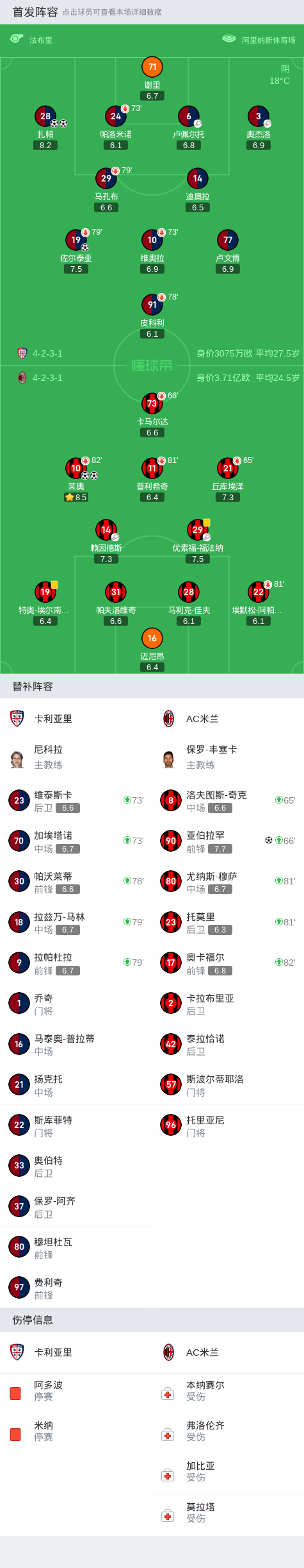 剑南春|米兰3-3遭卡利亚里绝平,莱奥、扎帕分别双响