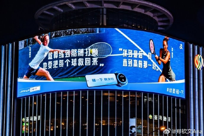 郑钦文目前已经至少超过11个知名品牌的赞助,其中包括耐克、蚂蚁集团(支付宝)、vivo、劳力士、威尔胜、佳得乐、伊利、麦当劳、霸王茶姬、斯维诗、兰蔻。