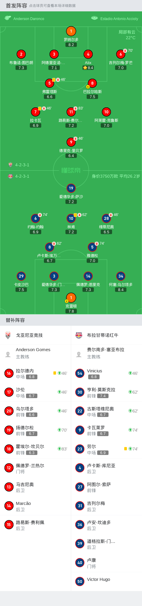 戈亚尼亚竞技0-0布拉甘蒂诺,两队各拿一分战报bot @懂球帝2024-11-10 07:51在巴西足球甲级联赛第33轮的较量中,戈亚尼亚竞技坐镇主场迎战布拉甘蒂诺红牛。经过激烈的对抗,双方均未能攻破对方球门,比赛以0-0的比分收场。两队在场上展现了顽强的防守和不懈的拼搏精神,尽管创造了一些得分机会,但都未能转化为进球。比赛结束后,戈亚尼亚竞技和布拉甘蒂诺红牛各自收获一分。点击查看本场比赛详细数据>>点击查看巴甲完整积分榜>> 球队阵容 技术统计 展开更多