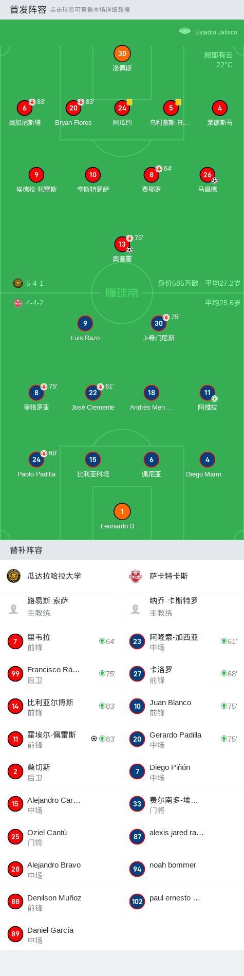 瓜达拉哈拉大学3-1萨卡特卡斯,霍埃尔-佩雷斯、奥塞霍破门