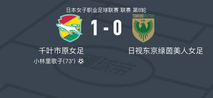 在日本女子职业足球联赛第8轮的较量中,千叶市原女足迎战日视东京绿茵美人女足。比赛中,千叶市原女足的Miyu Inayama送出精妙助攻,小林里歌子成功破门,为球队取得领先。最终,千叶市原女足以1-0战胜对手,取得了比赛的胜利。