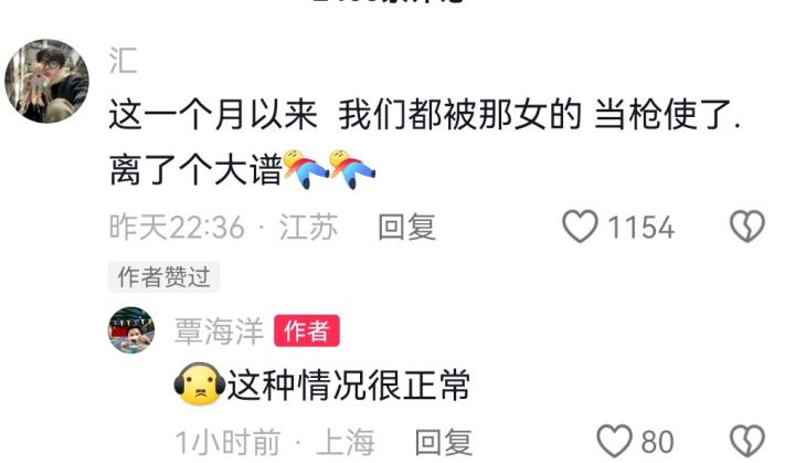 覃海洋回复“我们都被那女的当枪使”的评论:这种情况很正常