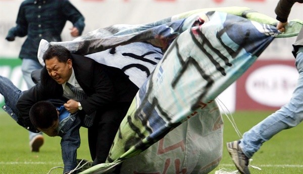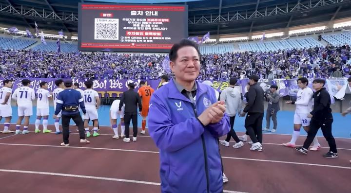 这位市长也曾是那支曾经的安养猎豹的死忠球迷,在心爱的球队出走首尔之后,他力主创建了新的安养队。他曾多次前往现场甚至远征客场与球迷一同在看台上高歌为球队助威,也被韩国媒体广泛认为是韩国”最爱看球”的市长。