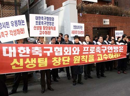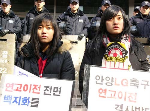 但随后,为了02世界杯而在全国范围内推广足球,韩国政府与韩国足协推动了一项名为緣故空洞化政策(서울 연고 공동화 정책) 的举措,旨在将首尔地区的球队迁往韩国其他城市以推广足球在全国的传播。根据韩国足协的决议,任何球队被禁止以韩国首都首尔作为主场,因为(首尔市)较大的市场与人口使得在该地的球队在联赛中具有很明显的竞争优势,有违背公平竞赛之嫌。正是由于韩国足协规定首尔不允许拥有职业球队,安养LG猎豹在1996年被迫迁至首尔卫星都市安养,而安养市民敞开胸怀接纳了这支来自首尔的球队,并逐渐把这支球队当成了当地人心中的荣耀。不少著名的韩国球员,例如前韩国国脚李荣杓都曾在安养LG效力。