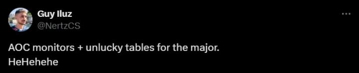 但是也有一些选手对这些设备不太满意。HEROIC的以色列选手Nertz表示:“Major用的是AOC显示器+糟糕的桌子,hehehehe。”
