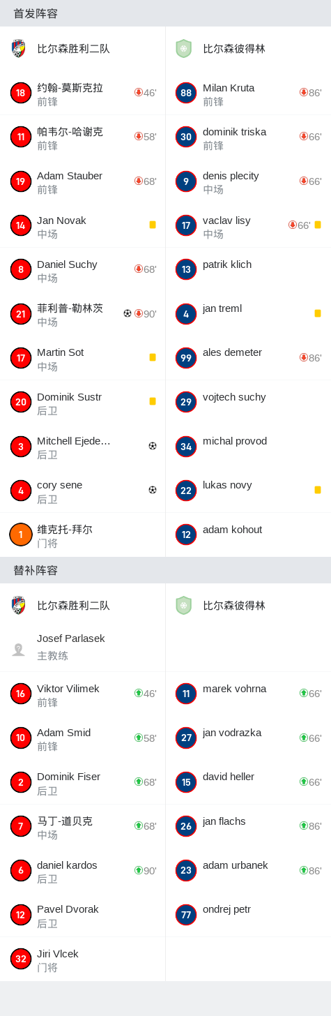 第35分钟,比尔森胜利二队球员Mitchell Ejedegba打入一球。
