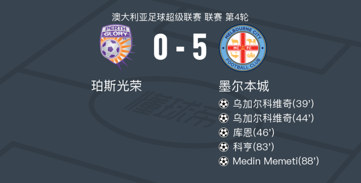 墨尔本城5-0横扫珀斯光荣,乌加尔科维奇梅开二度,Medin Memeti1传1射