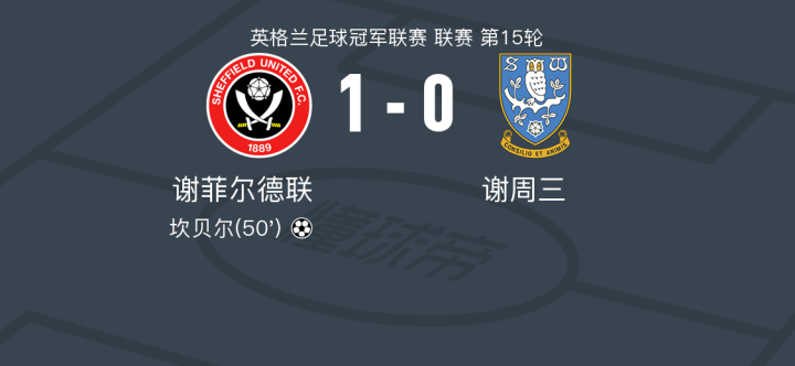 谢菲尔德联1-0谢周三,坎贝尔制胜球