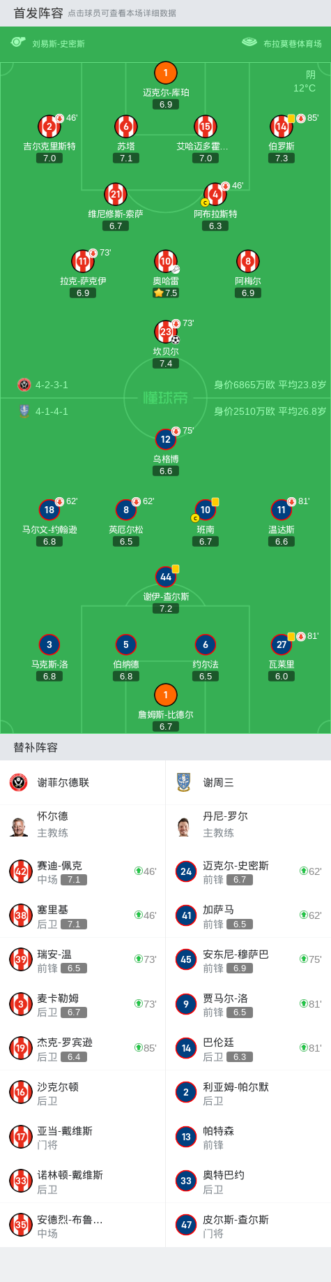 在英格兰足球冠军联赛第15轮的较量中,谢菲尔德联坐镇主场迎战谢周三。比赛中,谢菲尔德联的奥哈雷送出精妙助攻,坎贝尔抓住机会成功破门,为球队取得领先。最终,谢菲尔德联以1-0小胜谢周三,捍卫了主场荣誉。