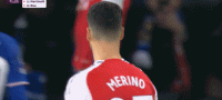 第73分钟,萨卡边路传中送到门前,梅里诺包抄抢点没碰到球