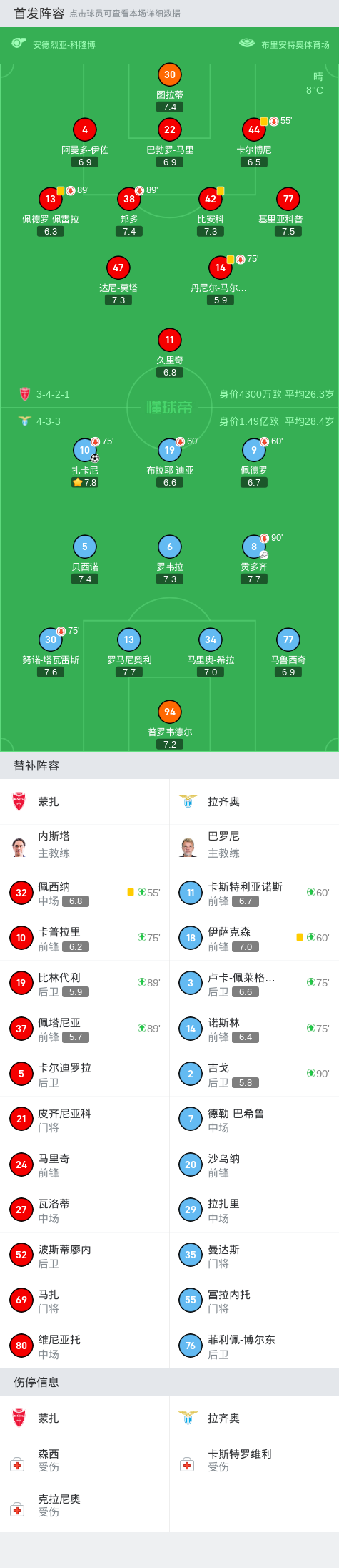 在意大利足球顶级联赛第12轮的较量中,蒙扎坐镇主场迎战拉齐奥。比赛中,拉齐奥的扎卡尼在贡多齐的助攻下成功破门,为球队取得领先。最终,拉齐奥凭借这一进球,以1比0战胜蒙扎,取得了比赛的胜利。