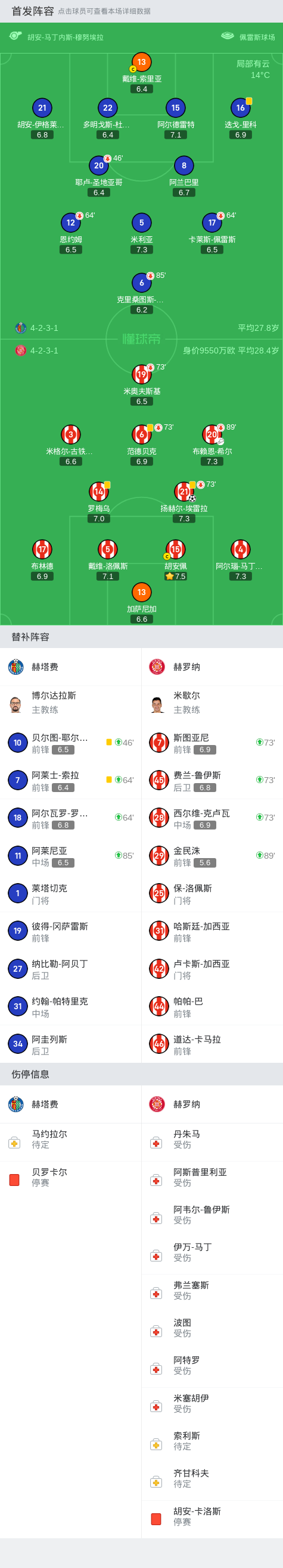 第42分钟,布赖恩-希尔助攻,埃雷拉头槌打破僵局,赫罗纳1-0